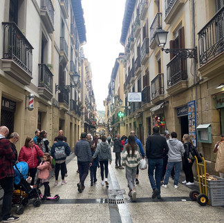 We wandered into the old town of San Sebastián and meandered to the beach which crashes down to the adjoining city river. For lunch we tried delicious pintxos and yummy Verdejo which is white wine. Seems to be the locals usual sunday activity. Many bars around the town to try. Steve tried a red wine and coke drink which tastes like a sangria.